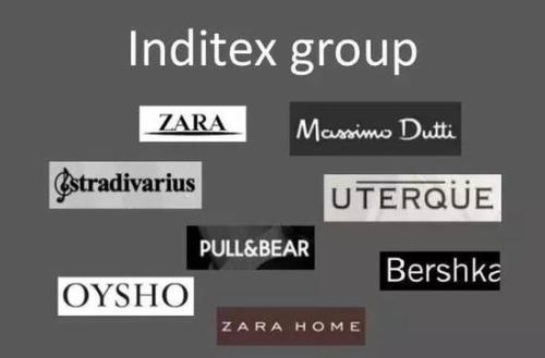 Inditex旗下擁有ZARA、Pull and Bear、Massimo Dutti、Bershka、Stradivarius、Oysho、Zara Home、Uterque、Zara Kids服裝品牌,ZARA是其中最成功的,被認為是歐洲最具研究價值的品牌之一。